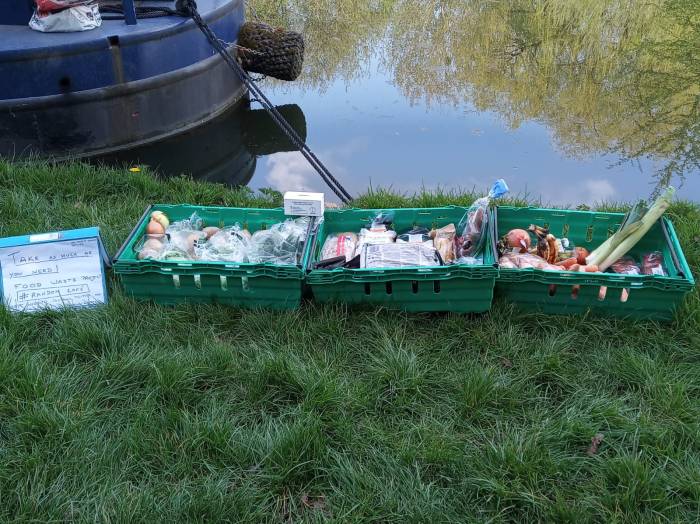 One of our volunteers lives on a canal boat and took some of our left over food and made their very own mini market for their fellow boaters.