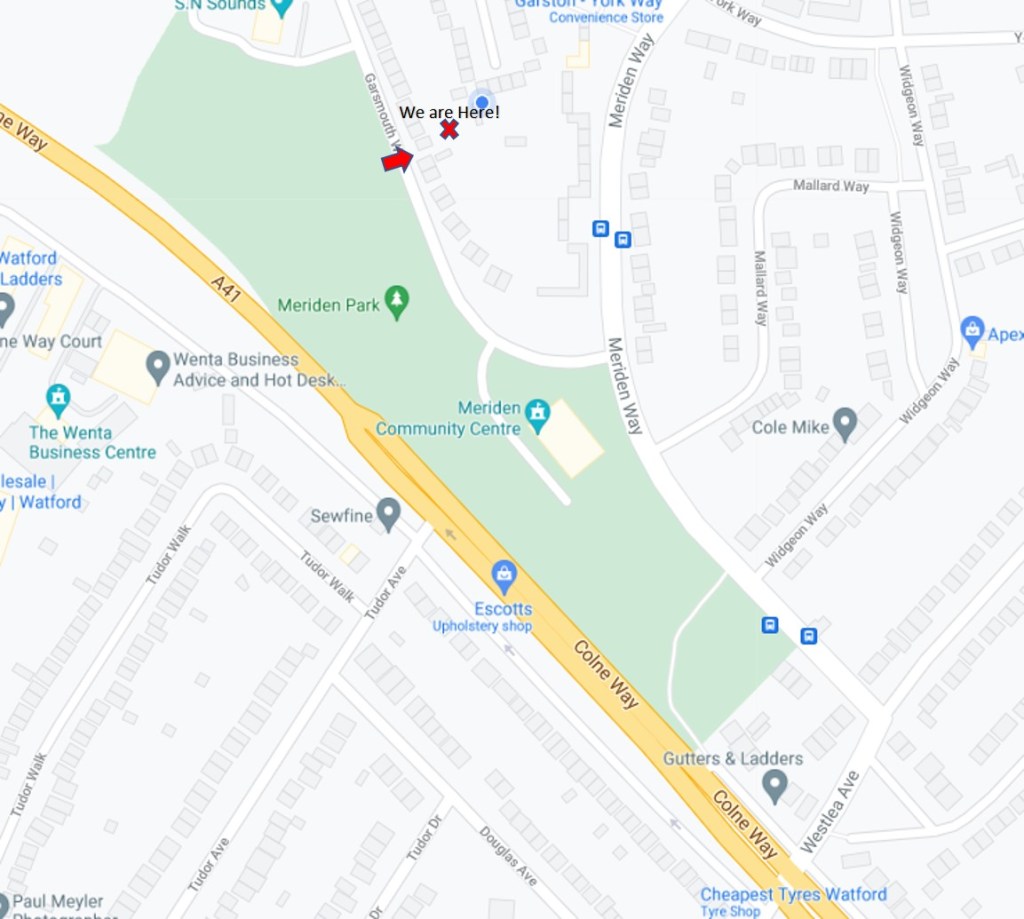 We can be found at Meriden Gardens, 24a Garsmouth Way, Watford WD25 9DR